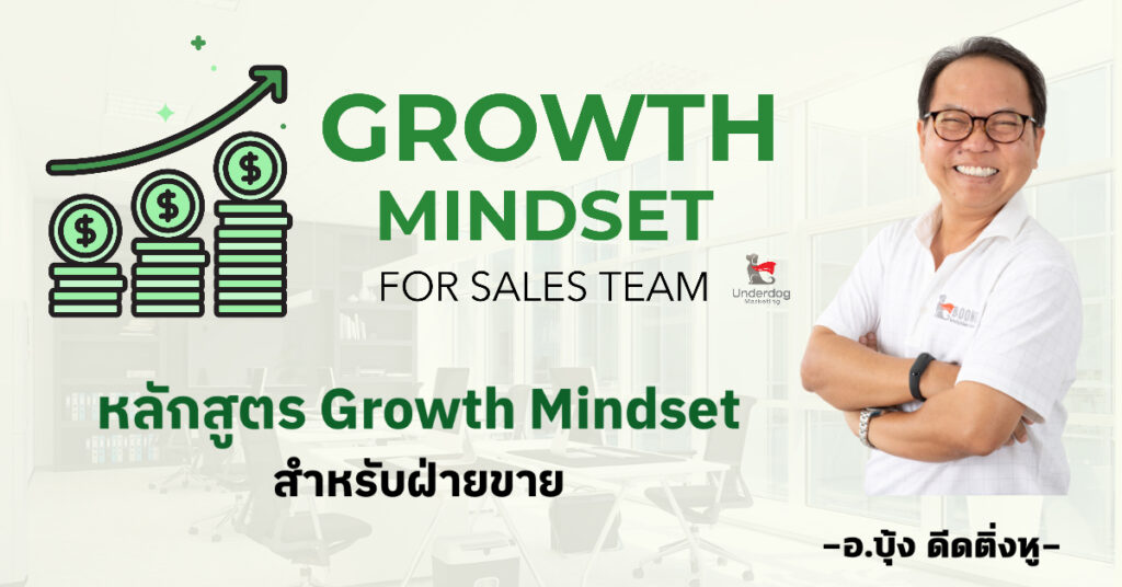 หลักสูตร “Growth Mindset for Sales team” ซึ่งเป็นหลักสูตรแบบ In-House จึงได้ออกแบบมาเพื่อตอบโจทย์ดังกล่าว ขึ้นอยู่กับประเภทธุรกิจของท่าน เน้นการทำ workshop มากกว่าบรรยาย เพื่อให้ได้ผลลัพธ์คือ