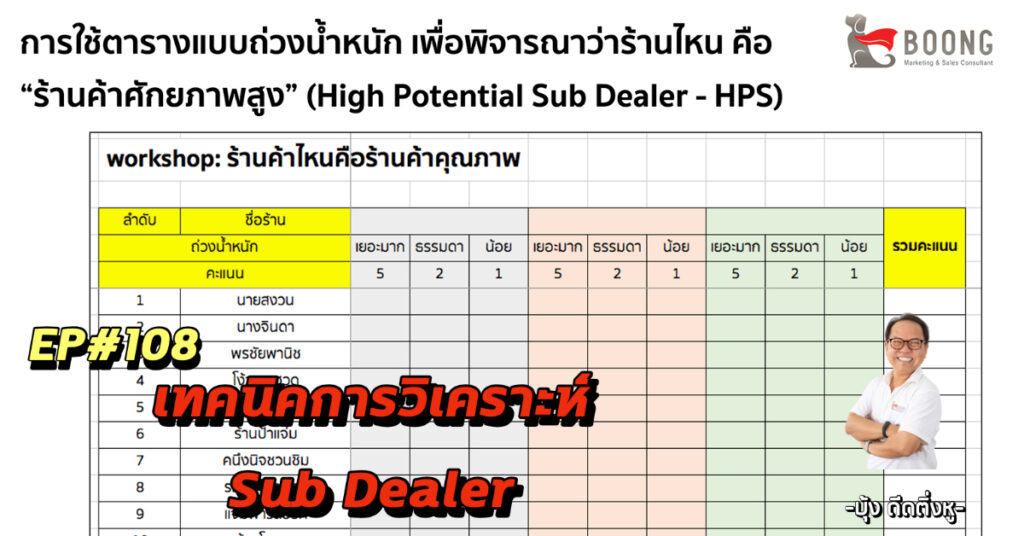 บริษัทฯยักษ์ใหญ่ด้านวัสดุก่อสร้างแห่งหนึ่ง ที่ผมเคยเข้าไปทำงานด้วย ก่อนหน้านี้เขาเน้นเฉพาะร้านค้า Dealer หรือเน้นร้านค้าตัวแทนจำหน่ายอย่างเดียว แต่ปัจจุบันร้านค้าที่สำคัญที่สุดของเขาคือร้านค้า Sub Dealer ครับ